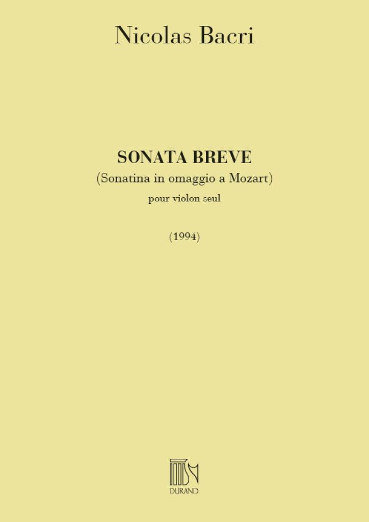 Sonata Breve (Sonatina In Omaggio A Mozart) Op. 45 Pour Violon Seul BACRI NICOLAS