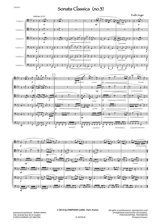 Sonata Classica (5 Trombones Ténors Et 2 Trombones Basses) AUGER EVELIN