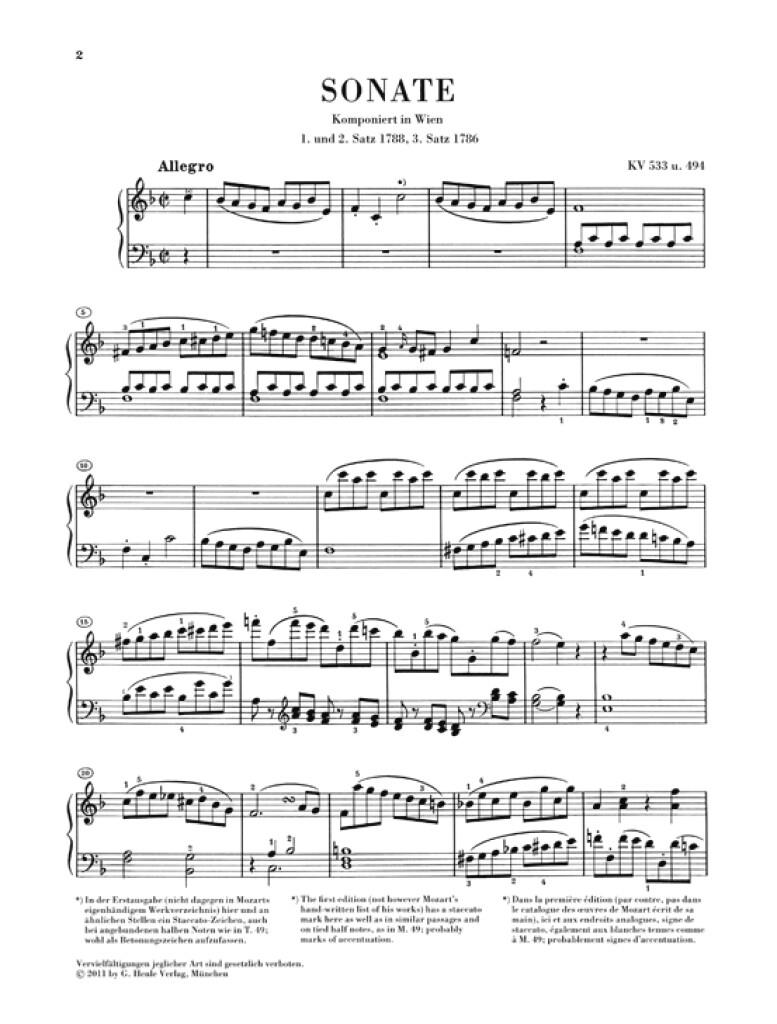 Sonata F Major K. 533/494 MOZART WOLFGANG AMADEUS