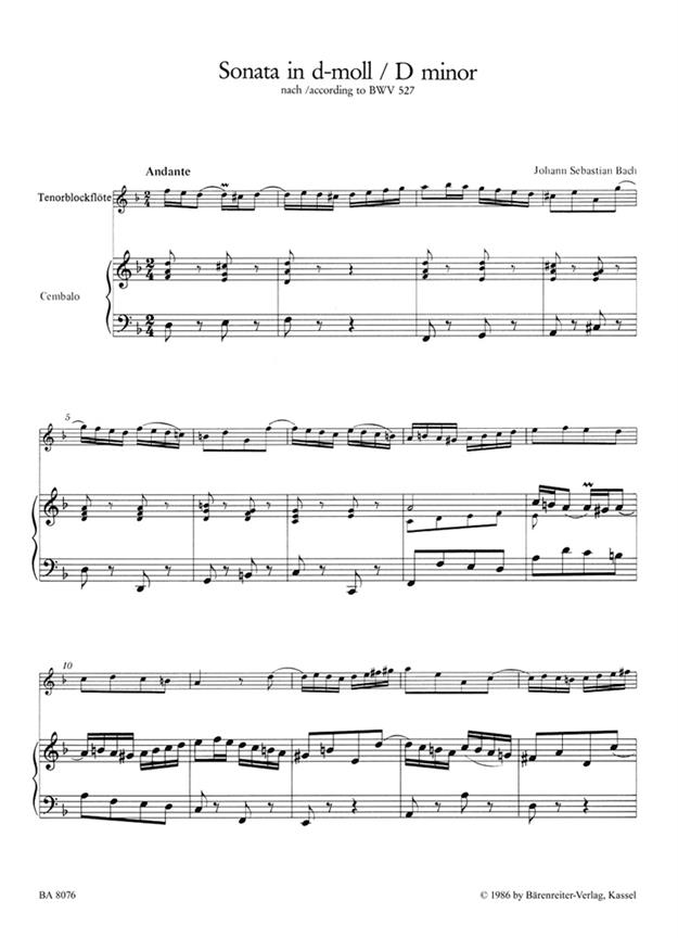 Sonata Für Tenorblockflöte Und Obligates Cembalo BACH JOHANN SEBASTIAN