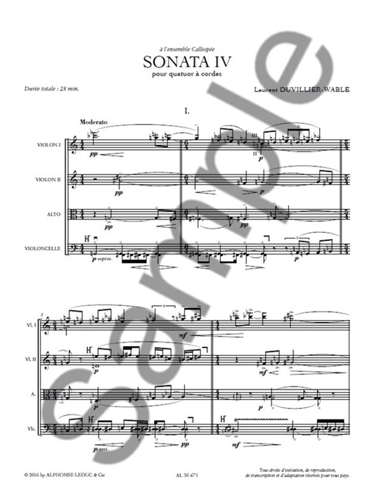 Sonata IV For String Quartet DUVILLIER-WABLE