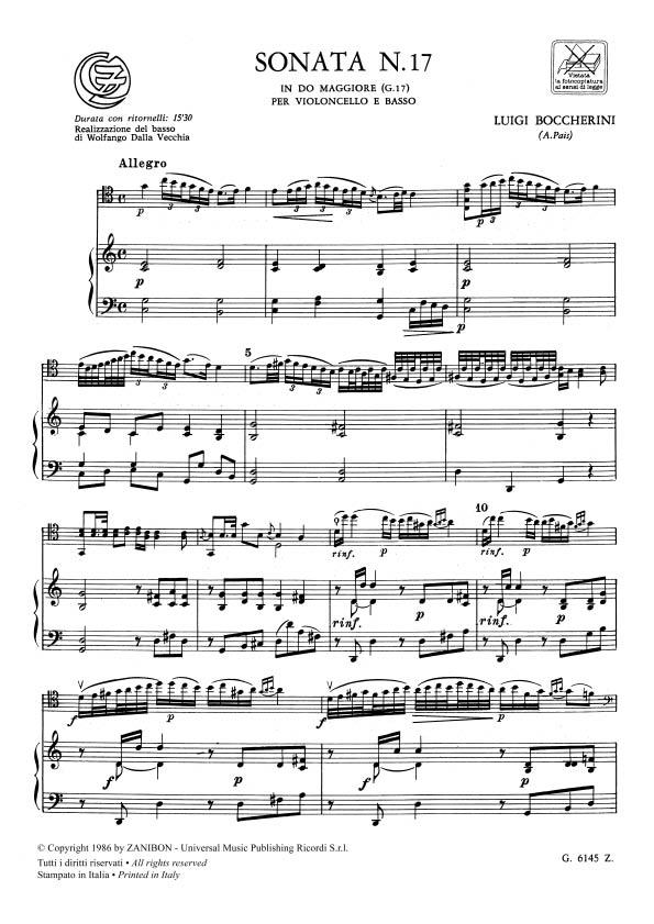 Sonata N. 17 In Do Maggiore, Per Violoncello E Basso (G. 17) BOCCHERINI LUIGI
