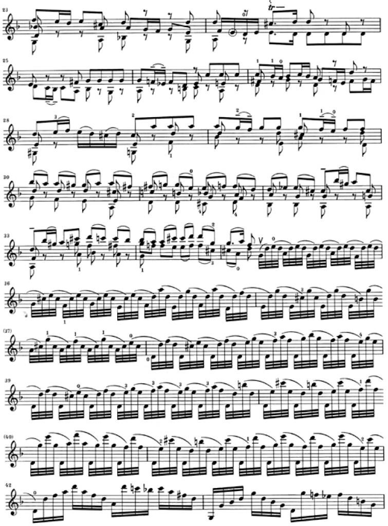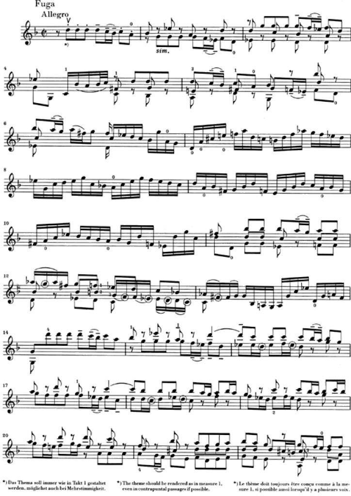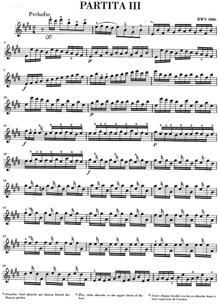 Les six solos pour violon de Bach ont été conservés sous la forme d’une copie au propre particulièrement belle du compositeur. Ces oeuvres sont considérées comme des étapes marquantes du répertoire aussi bien du point de vue purement musical que de la technique instrumentale – caractéristiques qu’elles partagent avec les six suites pour violoncelle. Bach y utilise habilement les possibilités du violon et parvient parfois à produire un jeu véritablement polyphonique grâce à l’utilisation d’accords brisés et de doubles-cordes. La célèbre chaconne de la deuxième partita constitue le point culminant de ces nouveautés. Elle atteint une densité musicale extraordinaire etreprésente un défi inouï pour le violoniste. La partie de violon, doigtés de Wolfgang Schneiderhan, est adaptée pour la pratique et contient des recommandations pour l’exécution des accords et des arpèges.