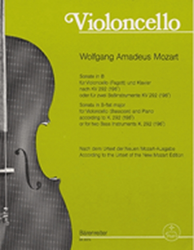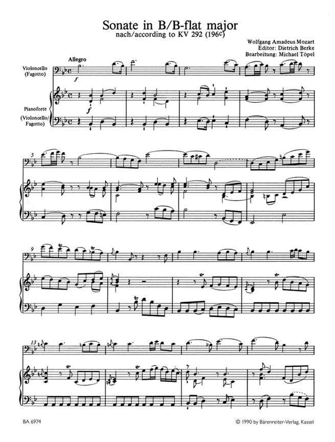 Sonate B-Dur Nach Kv 292 (196 C) Für Violoncello (Fagott) Und Klavier Oder Für Zwei Baßinstrumente (Celli, Fagotte) MOZART WOLFGANG AMADEUS