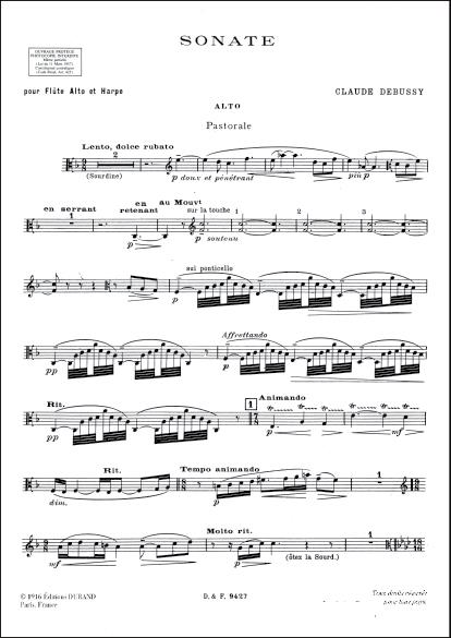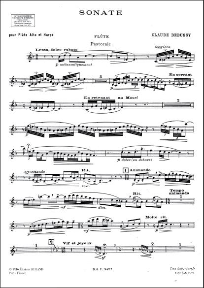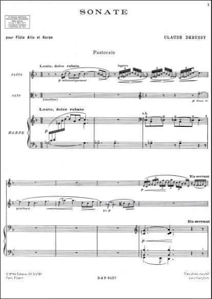 Claude Debussy 's Sonate for Flute, Viola and Harp. Parts.