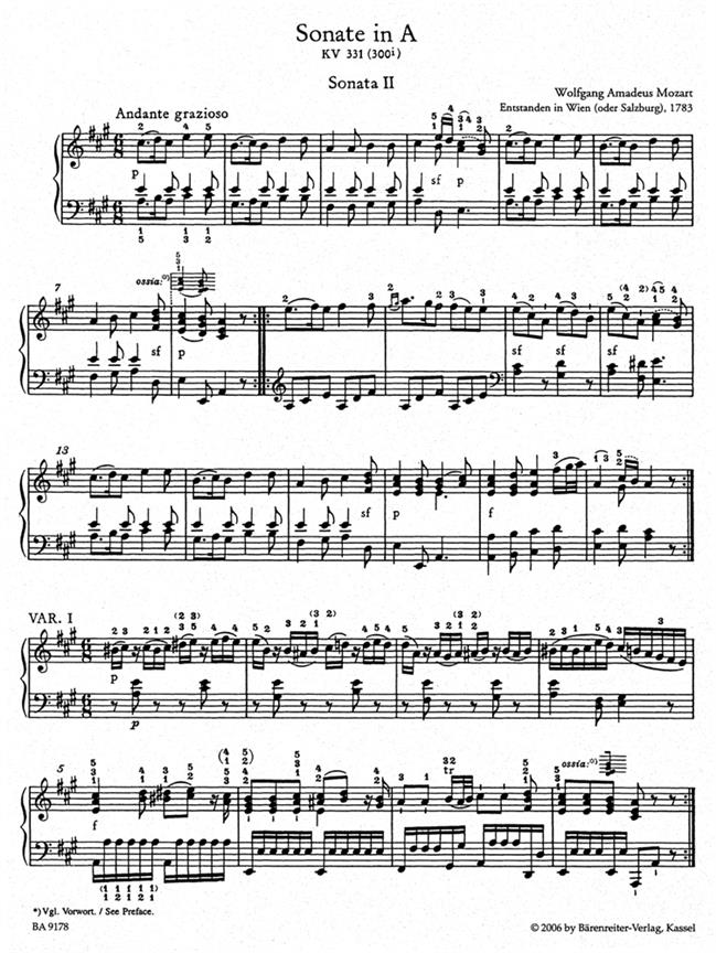 Sonate In A (‘Mit Dem Türkischen Marsch’) Für Klavier MOZART WOLFGANG AMADEUS