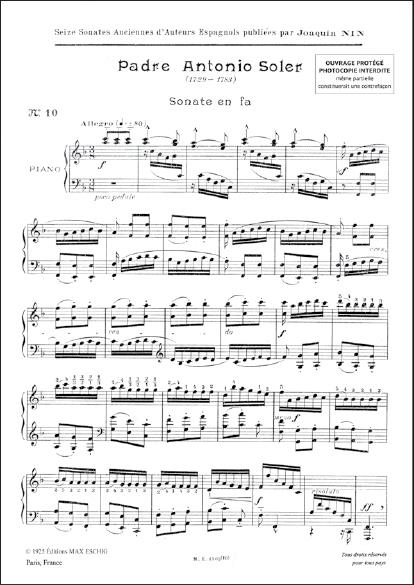 Sonate N. 10 En Fa Majeur, Pour Piano SOLER PADRE ANTONIO