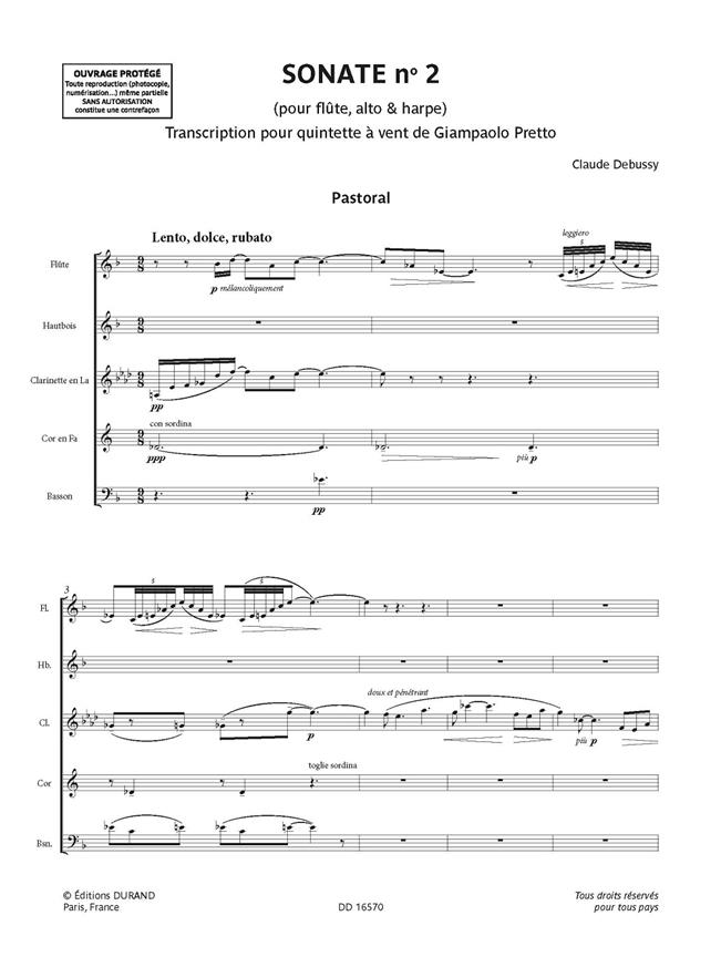 Sonate N. 2 (Flûte, Alto And Harpe) Pour Quintette A Vents (Arr. G. Pretto) DEBUSSY CLAUDE