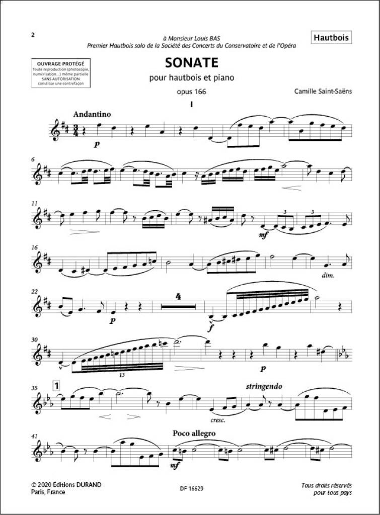 Sonate Op. 166 SAINT-SAENS CAMILLE