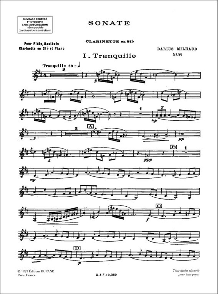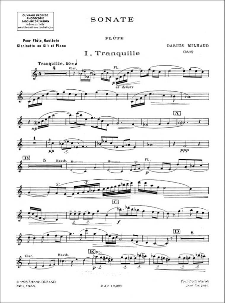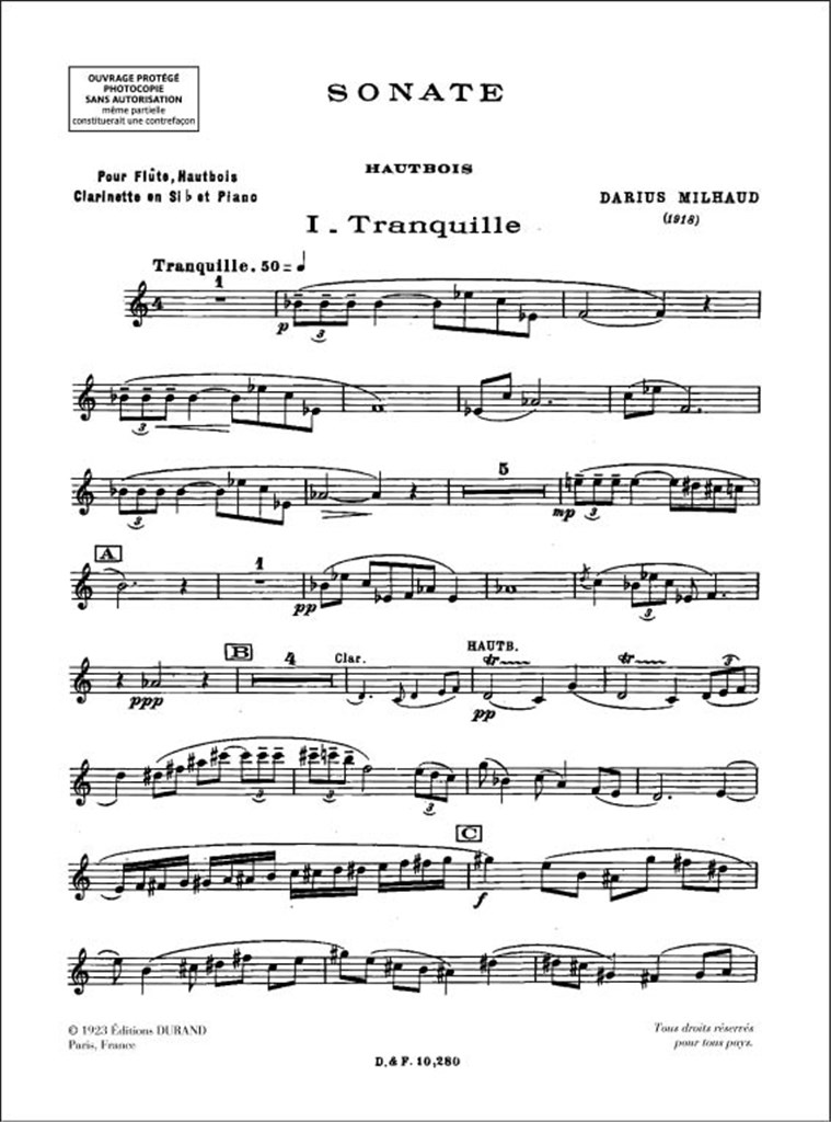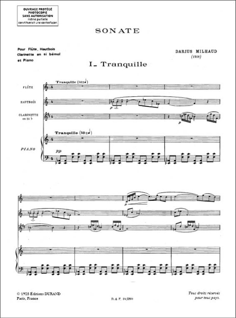 Sonate Op. 47 Fl/Htb/Cl/Piano MILHAUD DARIUS