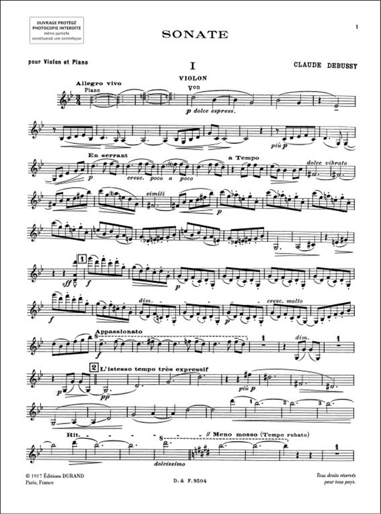 Claude Debussy's Sonate No. 3 for Violin and Piano accompaniment.