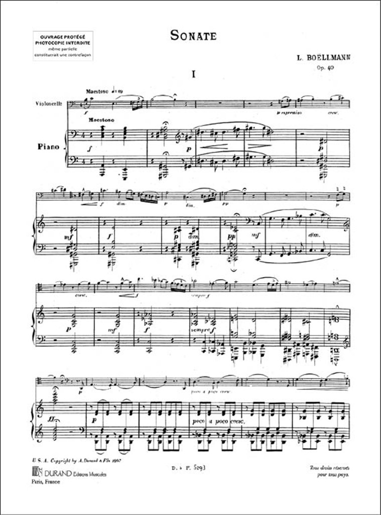 Sonate, Pour Violoncelle Et Piano, Op. 40 BOELLMANN LEON