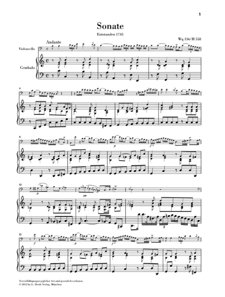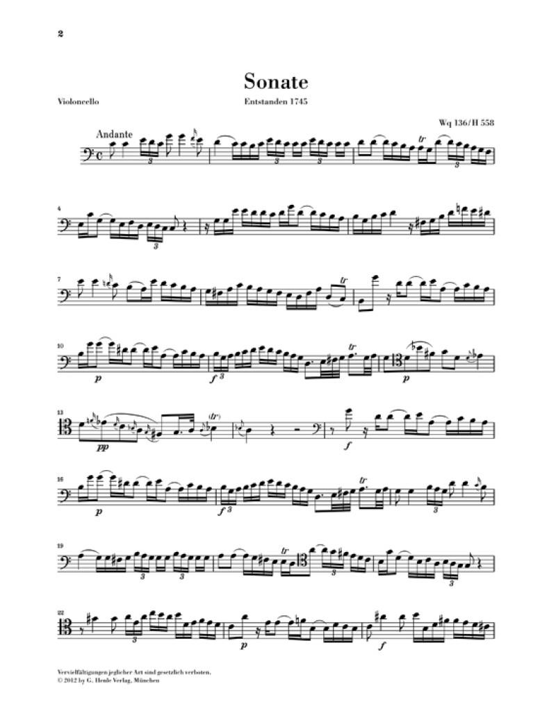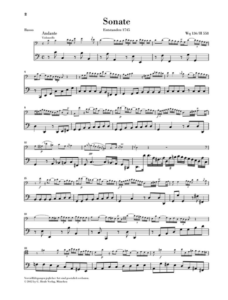 Tout comme son père, Carl Philipp Emanuel Bach a composé trois sonates pour viole de gambe. Elles datent de sa période passée au service du roi de Prusse Frédéric le Grand et donnèrent l'occasion au brillant gambiste de la chapelle de la cour, de faire étalage de sa virtuosité. Si les deux Sonates Wq 136 et 137 sont écrites avec accompagnement de basse continue, Bach fils suit, dans la Sonate en sol mineur Wq 88, le modèle fourni par son père: dans cette écriture à trois voix traitées d'égale manière, la main droite et la main gauche du clavecin rivalisent avec l'instrument soliste. Ces sonates peuvent aussi tout à fait être jouées au violoncelle - les doigtés de l'édition annotée sont d'une grande aide pour l'exécution.