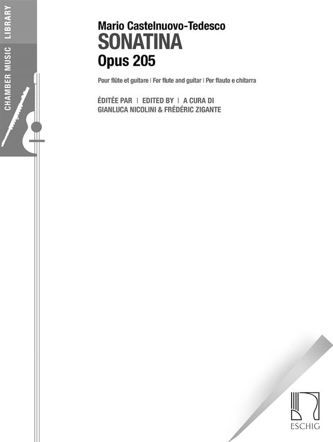 La Sonatina pour flûte et guitare op. 205 de Mario Castelnuovo-Tedesco (1895-1968) fut composée durant lété 1965, à la demande du duo formé par le flûtiste Werner Tripp (1930-2003) et le guitariste Konrad Ragossnig (1932). Cette nouvelle édition restitue la Sonatina dans le texte original du compositeur, en conservant scrupuleusement les nombreux signes darticulation et les indications figurant dans le manuscrit.