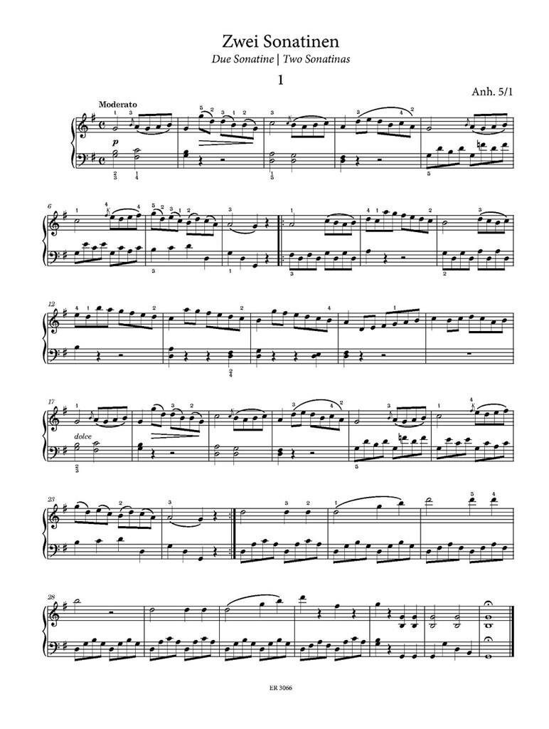 A complete collection of Beethoven’s Sonatinas and easy Sonatas from all stages of his career. Contents: Zwei Sonatinen: Ahn. 5/1-2 Zwei Sätze einer Sonatine Leichte Sonate op. 49/1 Leichte Sonate op. 49/2 Leichte Sonate WoO 51 Drei Sonaten: WoO 47/1-2-3