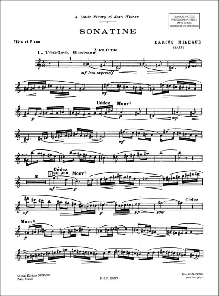 Sonatine Flûte/Piano MILHAUD DARIUS