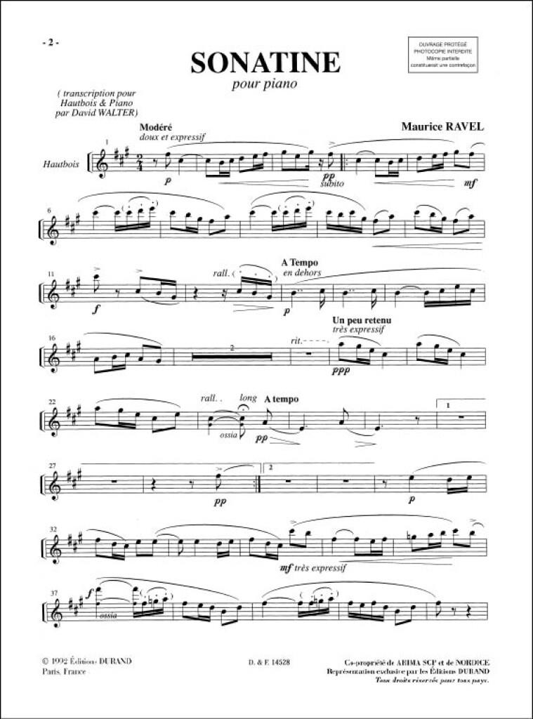 Sonatine Hautbois/Piano (David Walter) RAVEL MAURICE