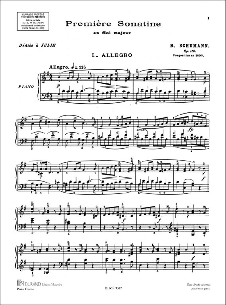 Sonatine N 1 Op. 118 Piano SCHUMANN