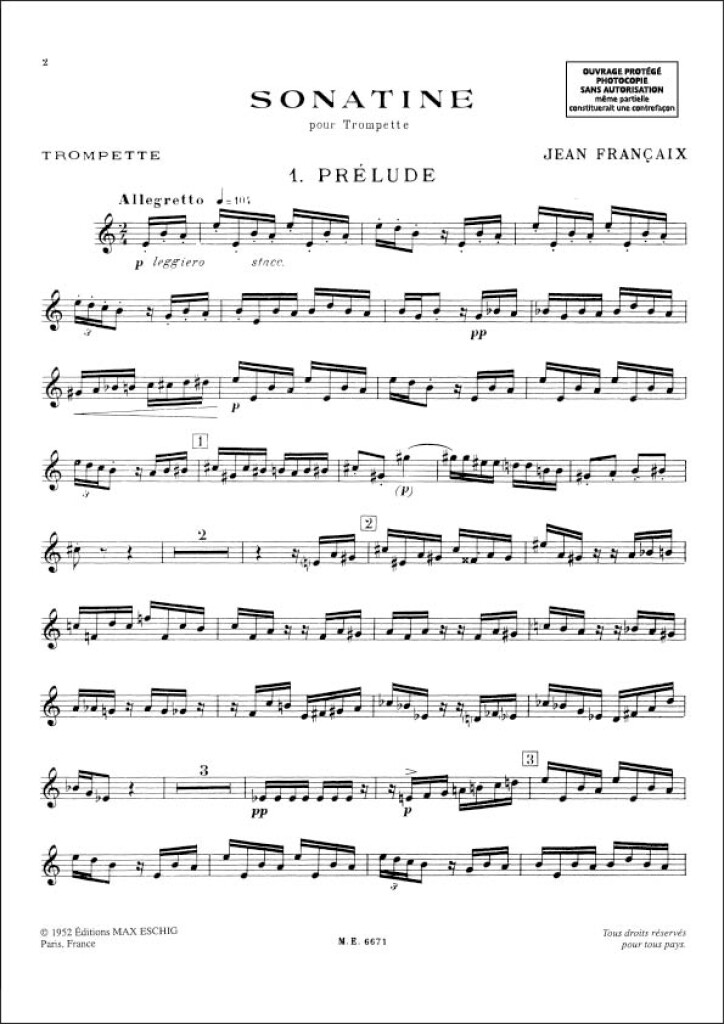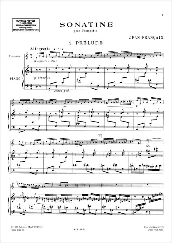 Sonatine, Pour Trompette Et Piano FRANCAIX JEAN