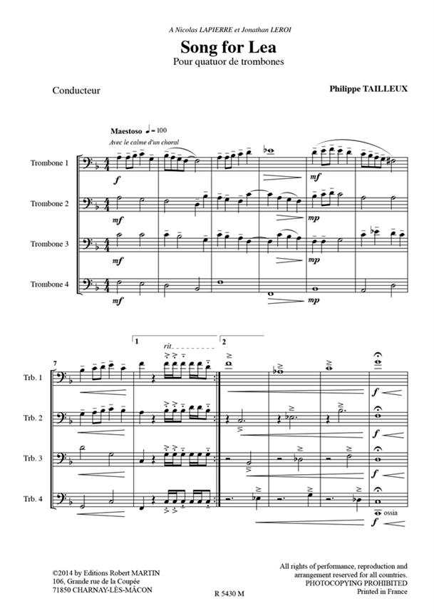 Song For Lea Quatuor De Trombones LEA PHILIPPE TAILLEUX