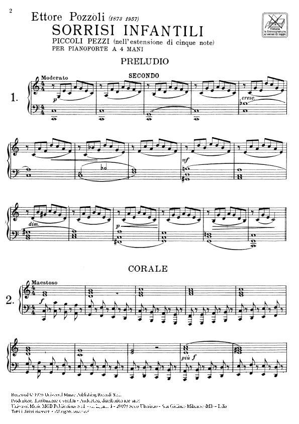 Ettore Pozzoli (1873-1957) fut un grand enseignant, l’un des plus grands que l’Italie ait eus au XXe siècle. Ses œuvres sur la théorie et le solfège, le cursus d’études de difficulté graduée, l’enseignement de l’harmonie et du contrepoint sont monumentaux, encadrés d’interminables pages de pièces pour recréation pianistique : douze croquis pour piano, pages très courtes, impressions, réflexions de la mer. Malgré le passage des décennies et la succession de nouvelles tendances, écoles, genres et modes de jeu, de nombreuses collections et textes destinés à l’enseignement primaire de la musique que Pozzoli a conçus et composés dans les premières décennies du siècle dernier conservent une validité incontestée.