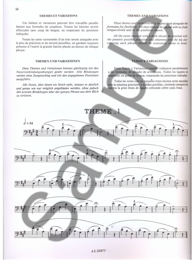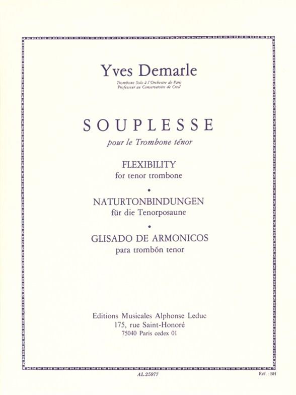 Born in Calais in 1946, Yves Demarle studied at the Paris Conservatoire where he won first prize for Trombone. He then went on to play with the Orchestre de Paris. His Flexibility for Tenor Trombone, therefore, is very well-informed. This volume is essential to trombonists who already have experience of the instrument. Flexibility for Tenor Trombone addresses use of the tongue in conjuction with the air column, and are to be practised alongside the student's usual technical studies. All exercises should be practised up to the seventh position and repeated until they can be played with perfect synchronisation between thelips, tongue and jaw. With detailed instruction in French, English, German and Spanish, Demarle 's Flexibility for Tenor Trombone is essential to the progression of technique of all aspiring trombonists.