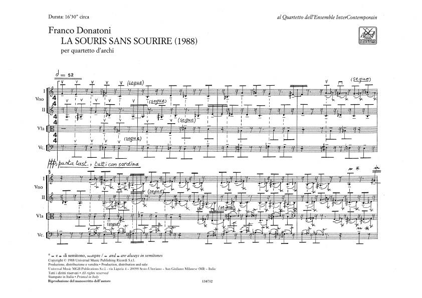 Souris Sans Sourire Per Quart. D’Archi DONATONI FRANCO