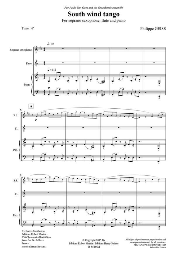 South Wind Tango Pour Soprano Sax, Flûte & Piano GEISS PHILIPPE