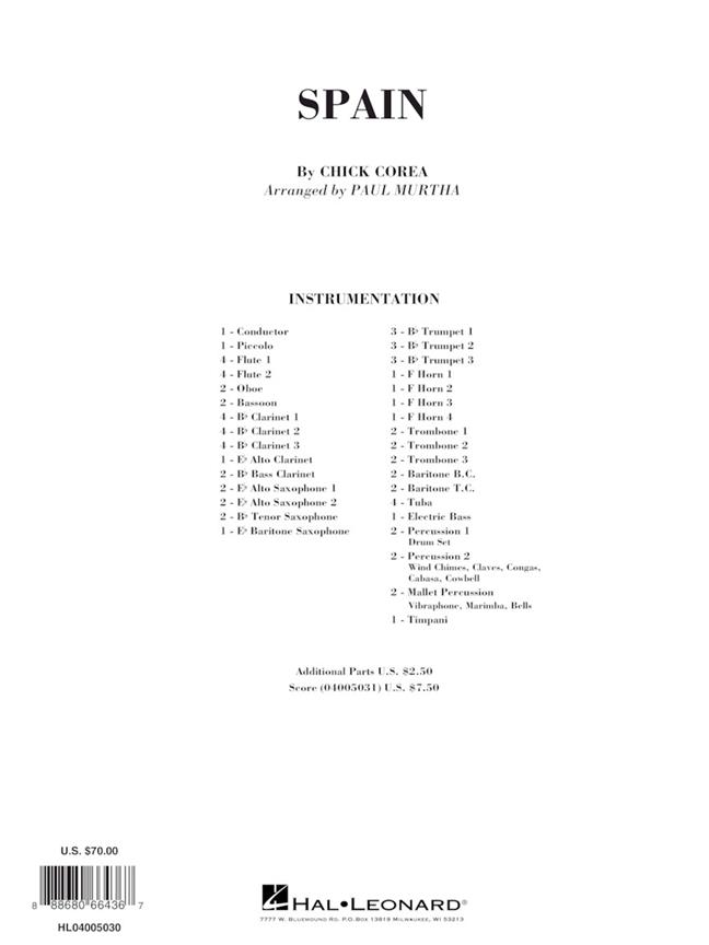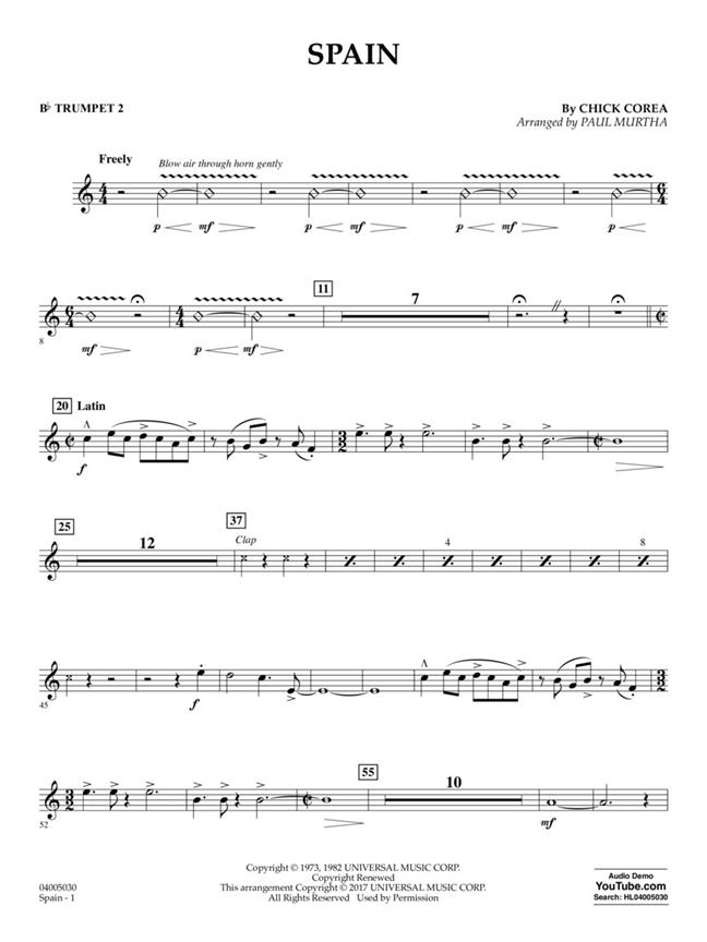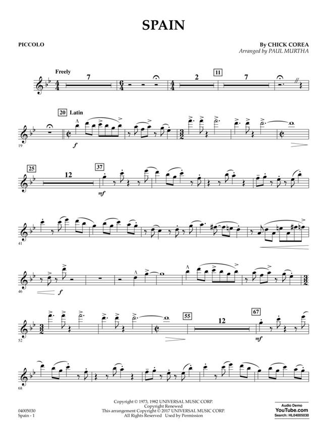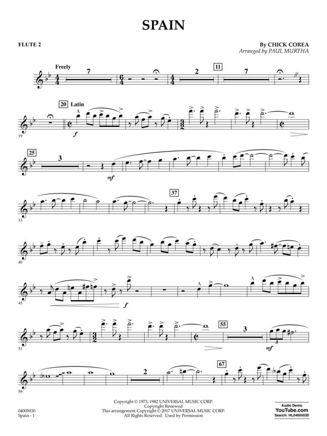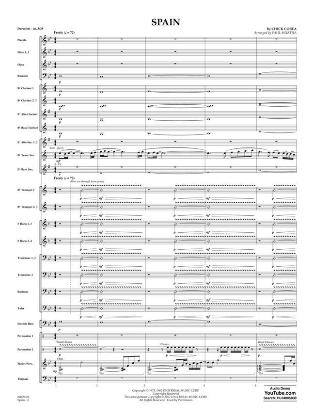 Composé par le pianiste jazz Chick Corea et enregistré sur son album emblématique de 1973 Light as a Feather, cette oeuvre dynamique a concrétisé son statut de classique du jazz-fusion. Le début lyrique et sensuel sur saxophone ténos solo est suivi par un rythme latin rapide et énergique qui comprend une mélodie partagée entre les différents registres. La version captivante de Paul Murtha est parfaite pour des concerts.