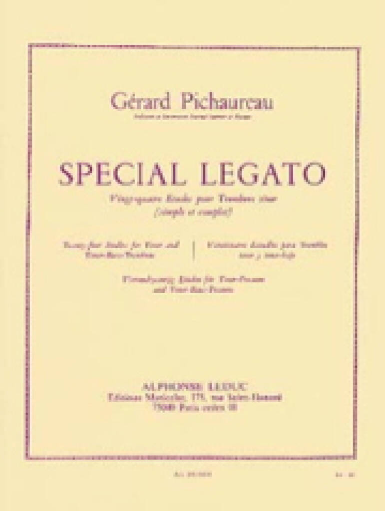 Special Legato - 24 Études pour trombone basse ténor et ténor de Gérard Pichaureau est un ensemble de 24 études simples et complètes. Parfaites pour développer la technique et la sonorité, ces pièces sont vraiment intéressantes pour les joueurs intermédiaires. Né en 1916, Gérard Pichaureau est tromboniste et compositeur. Soliste de la Garde républicaine française, il a également enseigné le trombone au Conservatoire de Paris d’après André Lafosse.
