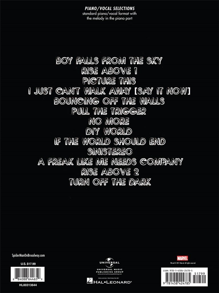 Dispose de 13 mélodies composées par Bono de U2 et The Edge pour le tant vanté comédie musicale de Broadway.