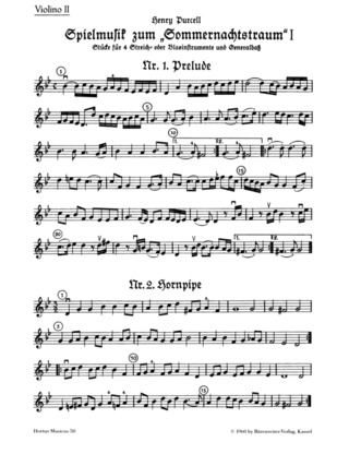 Spielmusik Zum Sommernachtstraum. Heft 2 (Nr. 1 – 9) PURCELL HENRY Quatuor à Cordes et Basse Continue (Orchestre) (Ve Hortus Musicus 8,10€