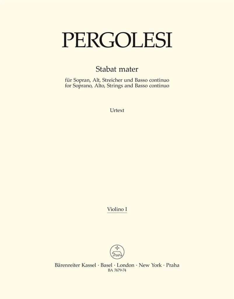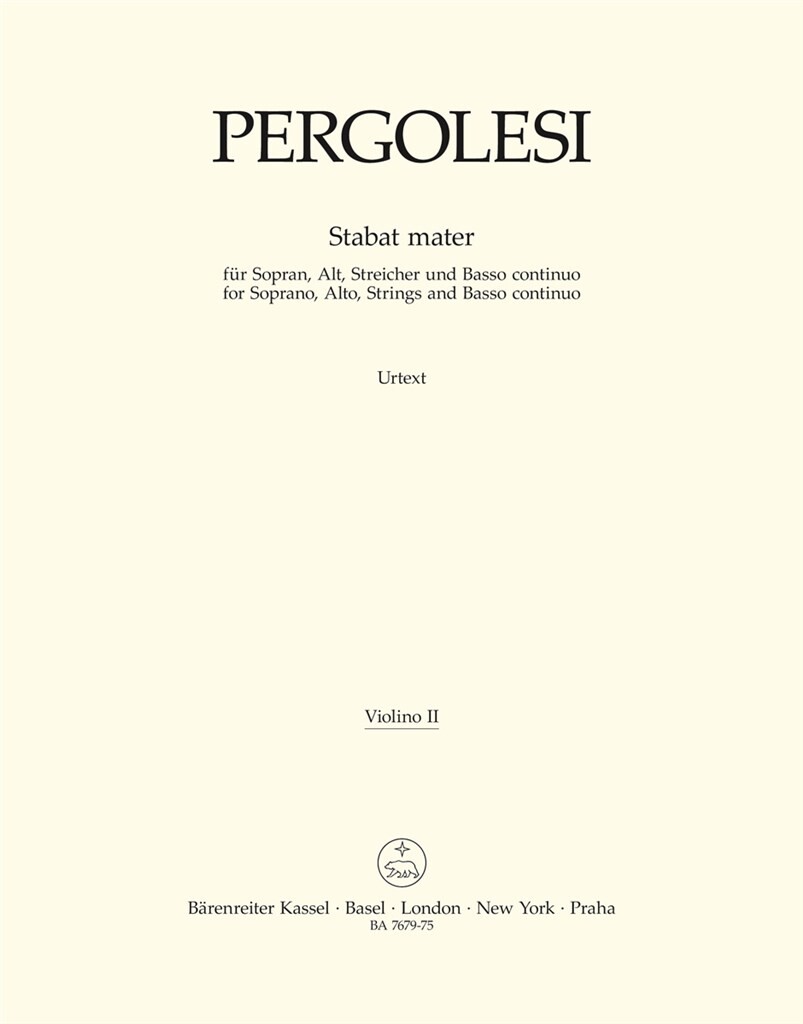 Stabat Mater For Soprano, Alto, Strings And Basso Continuo PERGOLESI GIOVANNI BATTISTA