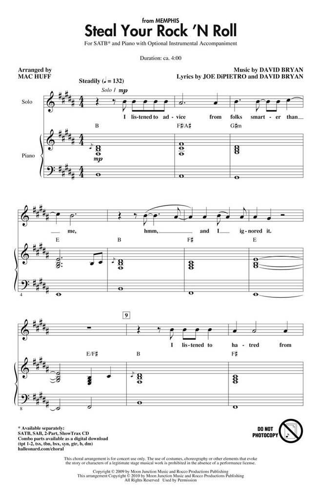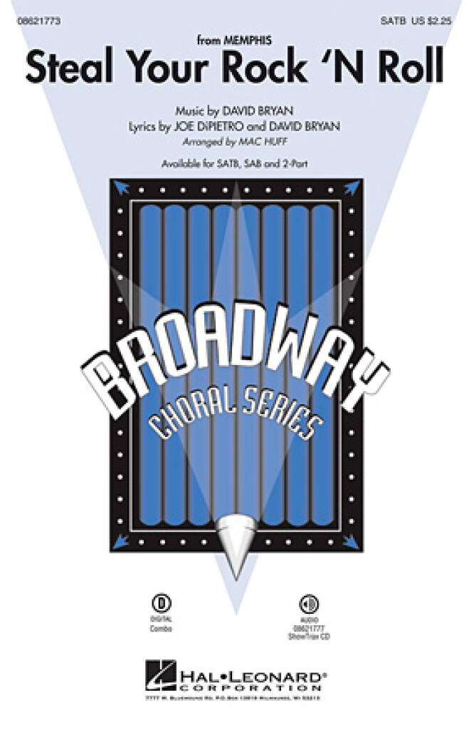 Lauréate du Tony Award 2010 de la meilleure comédie musicale, Memphis explore la naissance frénétique du rock & roll et les histoires dramatiques des musiciens noirs qui ont ouvert la voie à une nouvelle génération d’artistes. C’est le dernier morceau dynamique du spectacle, avec des paroles énergiques et un refrains irrésistible qui fera lever votre public ! Disponible séparément : SATB, SAB, 2 parties, ShowTrax CD. Pièces combo disponibles en numérique (tpt 1-2, tsx, tbn, bsx, syn, gtr, b,dm). Durée : environ 16h00.