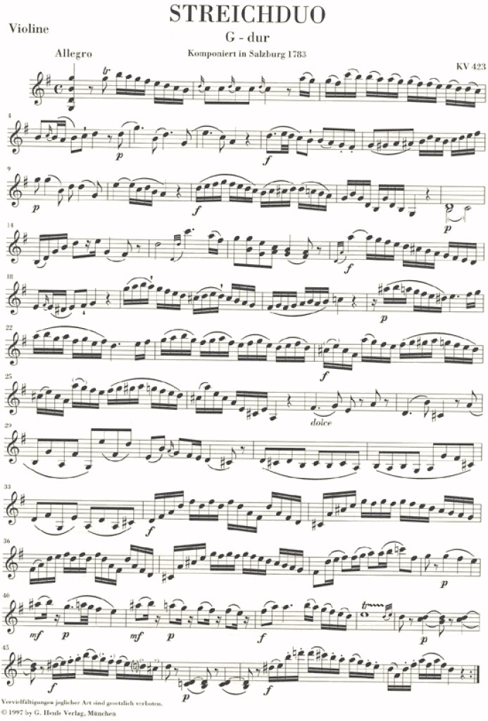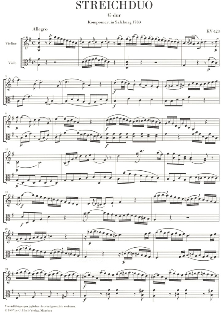 Duo (Violin and Viola) G major K. 423