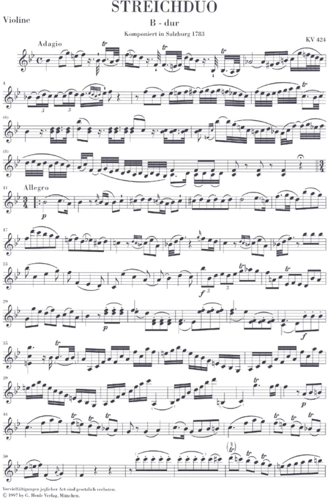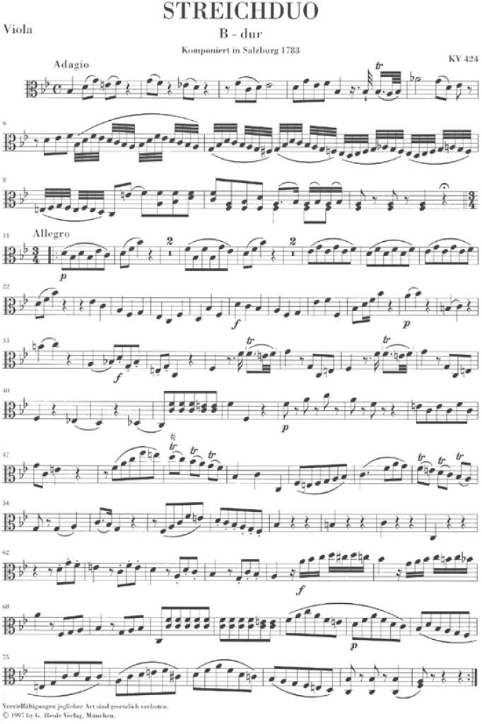Duo (Violin and Viola) B flat major K. 424