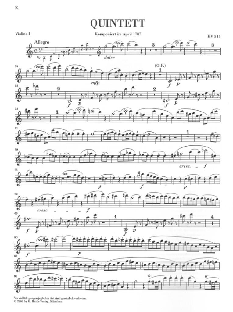 En cette année Mozart 2006, les Éditions Henle lancent la publication de l’édition Urtext en trois volumes (parties et partitions d’étude) de tous les quintettes à cordes de Mozart. Cette publication débute par le volume no II, qui comprend les quintettes les plus connus et les plus joués, en Ut majeur (K. 515), sol mineur (K. 516) et ut mineur (K. 406/516b) de l’année 1787. Cette édition Urtext recèle une petite sensation. Elle exploite en effet pour la première fois une source jusqu’ici inconue: il y a peu en effet, Ernst Herttrich, l’un des deux éditeurs, a découvert des parties manuscrites relatives à ces oeuvres, matériel présentant des ajouts de la main de Mozart, enparticulier concernant la dynamique et l’accentuation rythmique.