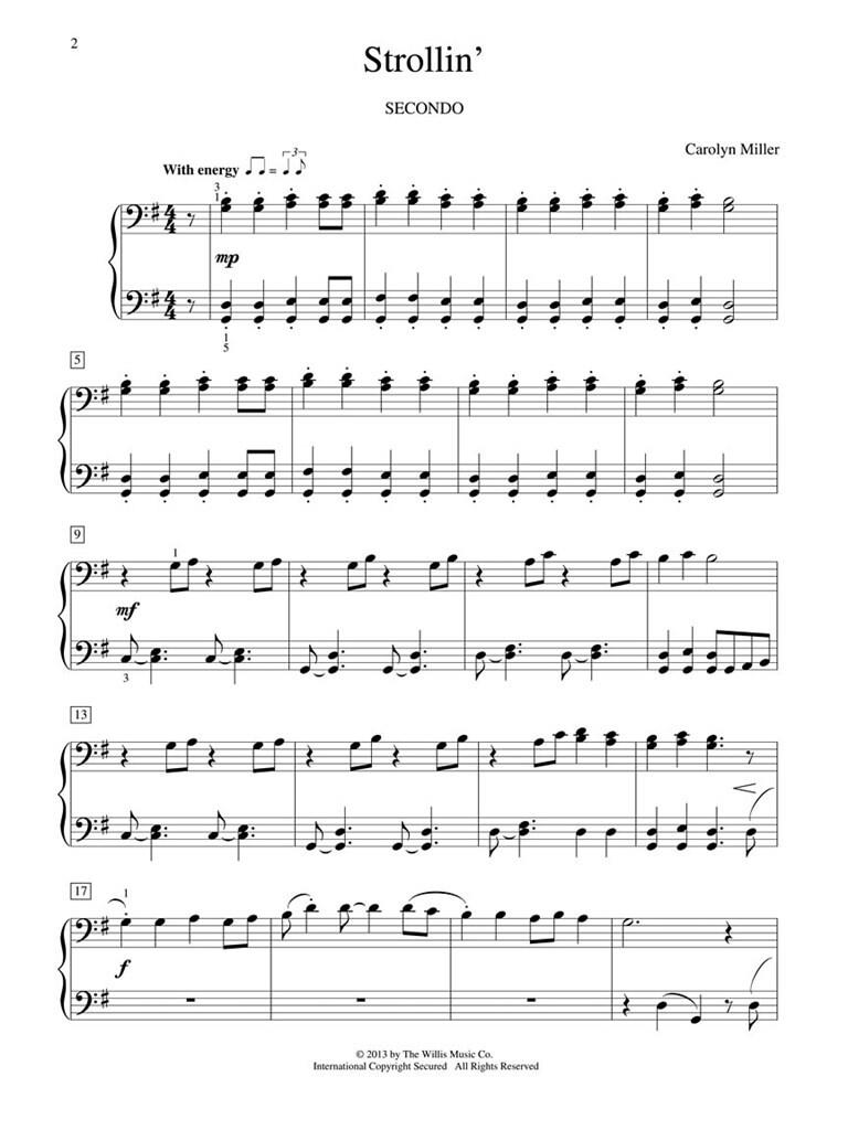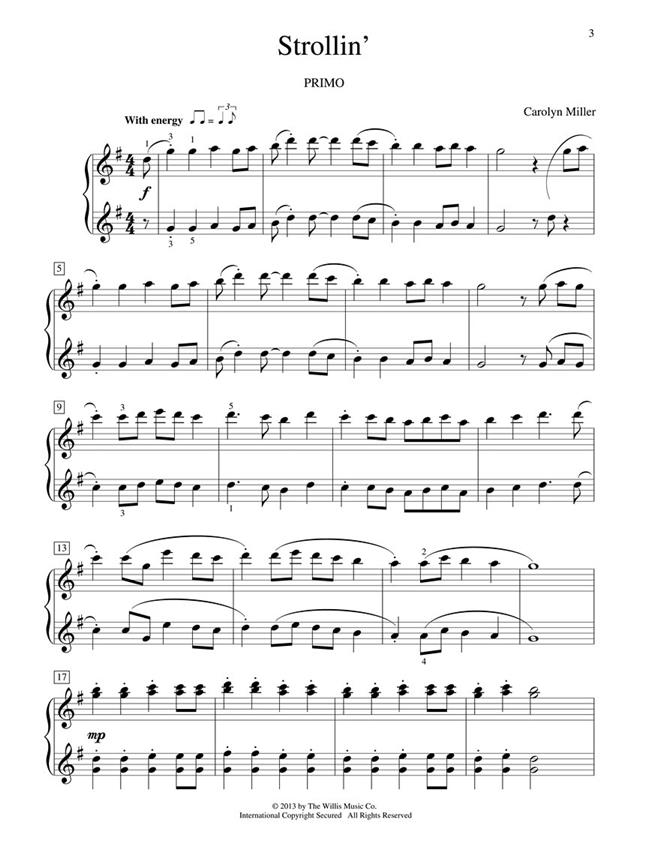 Ce duo frais et enjoué est parfait pour l’été ! Son rythme décontracté et sa mélodie accrocheuse feront fredonner les élèves – et feront extrêmement enthousiaste à l’idée de jouer ensemble. Tonalité : sol majeur.