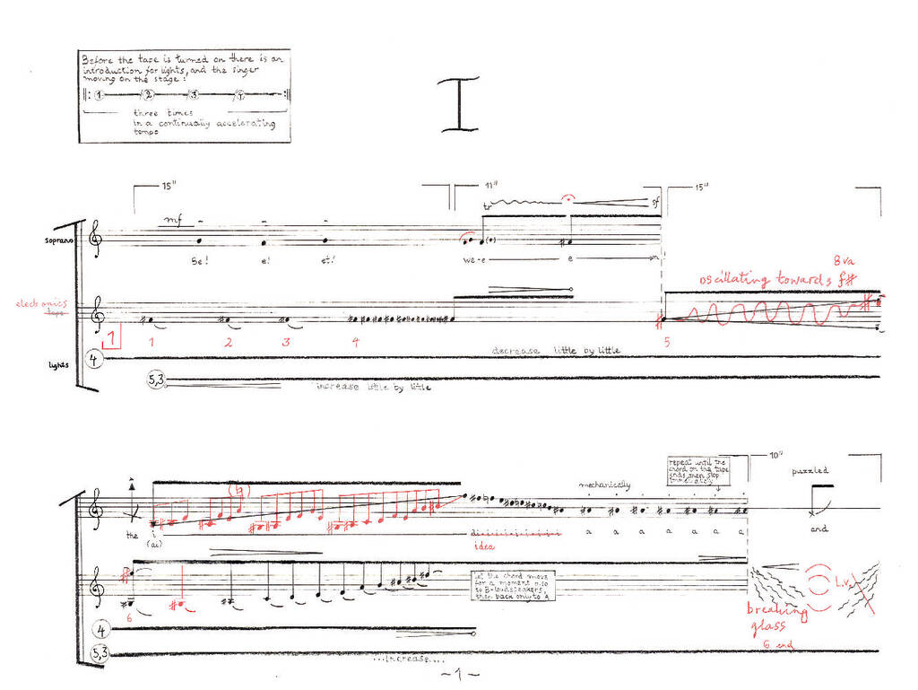 La première œuvre de Kaija Saariaho pour scène a été créée à l’Académie Sibelius en 1981 et n’a été rejouée qu’en 2022, lorsque le compositeur a reconstitué l’œuvre, y compris la partie originale sur bande qui avait été perdue. Il a été publié pour la première fois en 2023. La pièce est basée sur le poème The Hollow Men de T S Eliot et présente un solo de soprano avec une conception audio et lumineuse électronique. La partition, publiée pour la première fois en 2023, combine notation conventionnelle et graphique et comprend des notes détaillées d’interprétation ainsi qu’une introduction du compositeur.