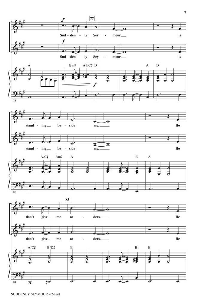 De la comédie musicale de théâtre et de film incroyablement populaire Little Shop of Horrors de Howard Ashman et Alan Menken, vient cet hommage kitsch à la nostalgie des années 60. Le public et les chorales vont adorer ! Disponible séparément : SATB, SAB, 2-Parties, CD ShowTrax. Pièces combinées disponibles en téléchargement numérique (tpt 1-2, tsx, tbn, syn, gtr, b, dm). Durée : environ 3:35.