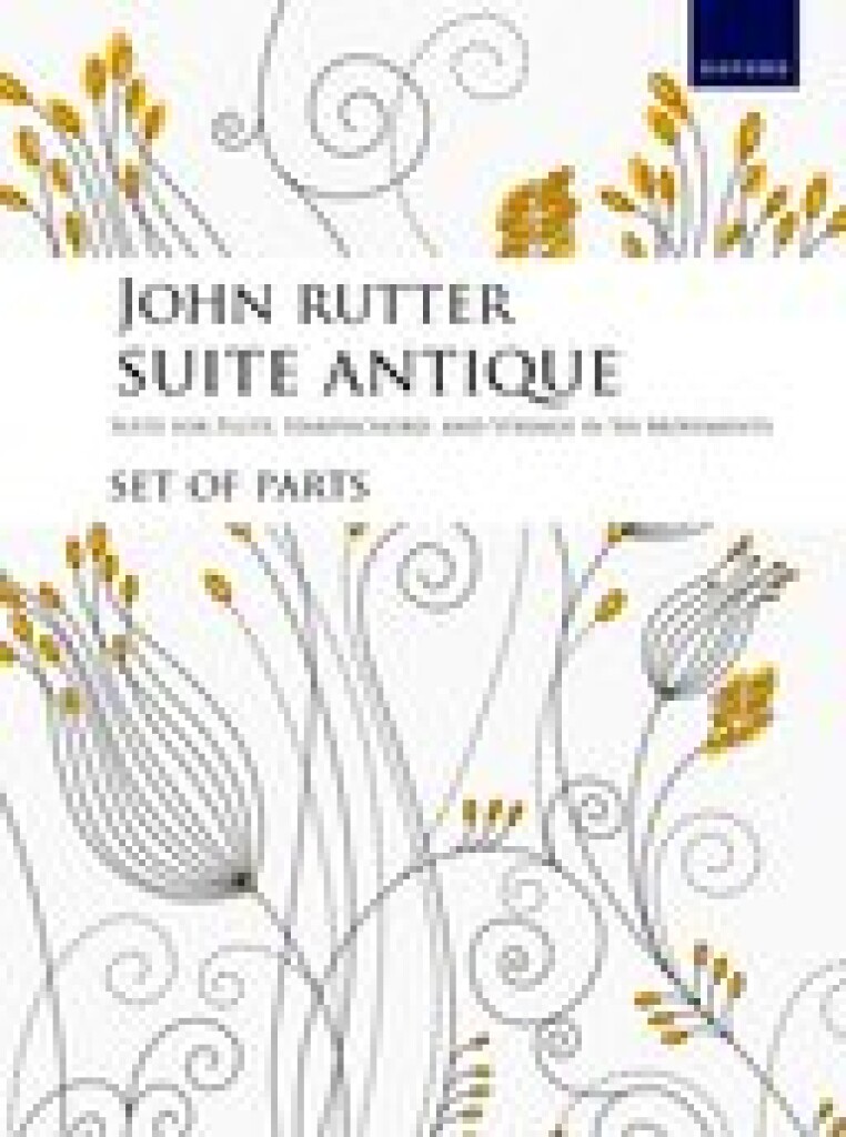 The instrumentation for this work is the same as Bach's Brandenburg Concerto No.5. The Suite is made up of six movements ranging from a 'Bach-like Aria' to a 'Richard Rodgers-style Waltz'. Rutter's own style comes through most strongly in the final Rondeau with its characteristically forward-driving rhythms and beautiful melodic lines. Evoking an 'antique' spirit, each movement is based on a Baroque or Classical style.