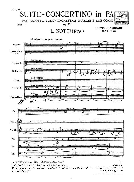 Suite-Concertino In Fa Op. 16 Per Fg. Orch. D’Archi E 2 Corni WOLF-FERRARI ERMANNO