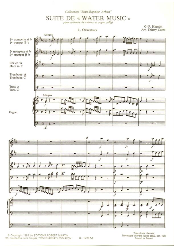 Suite De Water Music, Avec Orgue HAENDEL GEORG FRIEDRICH