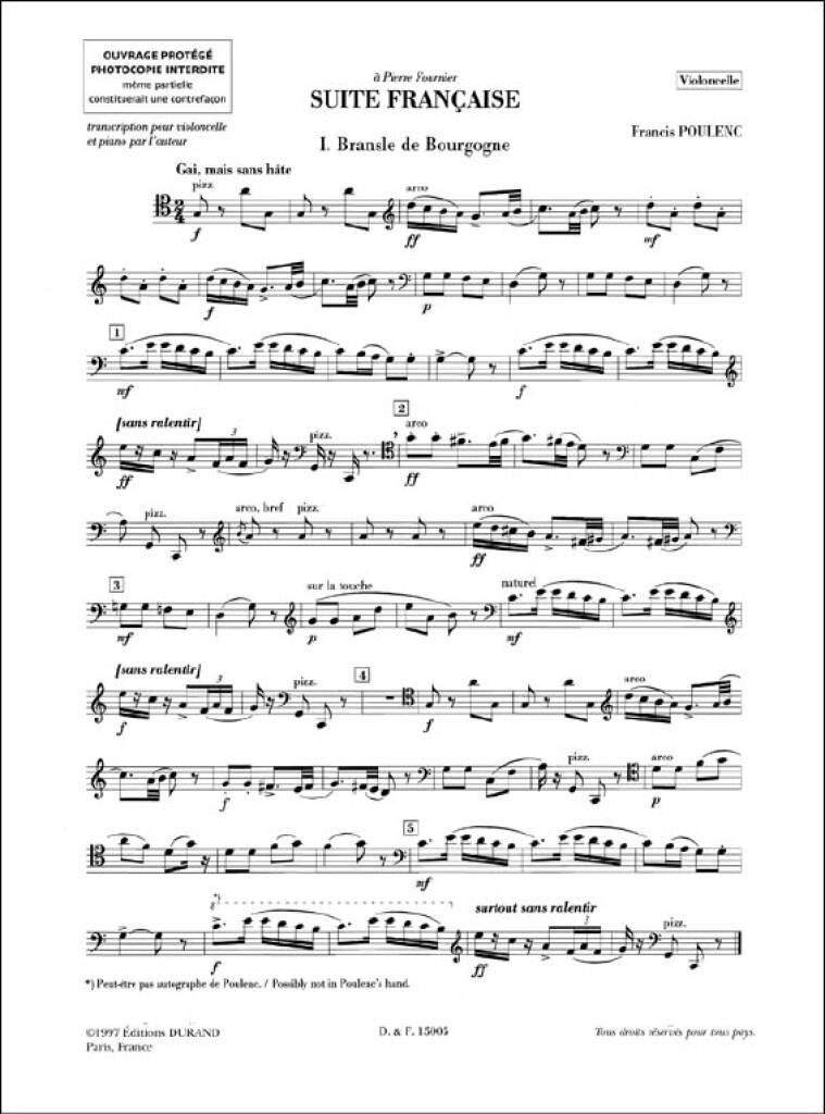 Suite Francaise Violoncelle/Piano (Transcrit Par L’Auteur) POULENC FRANCIS