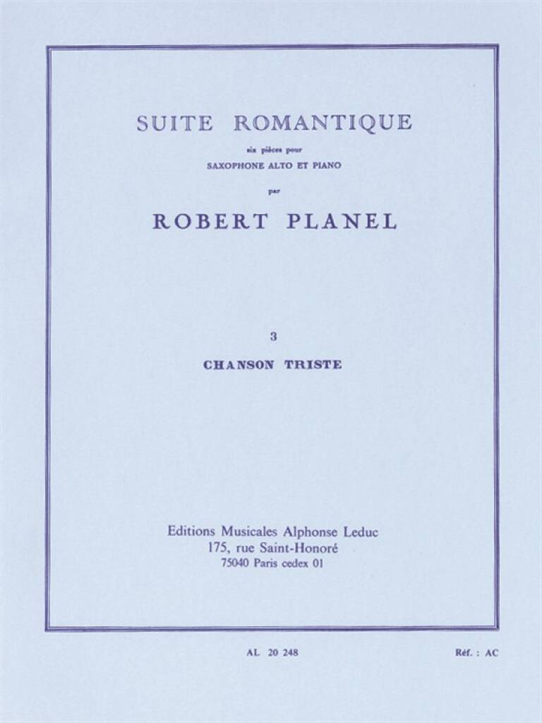 Suite Romantique N03:Chanson Triste Saxophone Mib Et Piano PLANEL