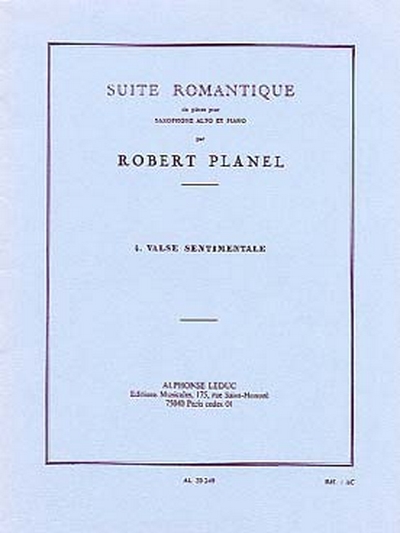 French composer, Robert Planel (1908-1994) was the son of composer and founder of the Music School of Montelimar, Alphonse Planel. Robert Planel was an exceptionally accomplished musician, reflected in his composition Suite Romantique for Alto Saxophone and Piano. The fourth movement of Suite Romantique, Valse Sentimentale is a charming piece for intermediate to advanced level saxophonists. With a typical performance lasting about two minutes, Planel 's Valse Sentimentale addresses a wide range, complex rhythms, articulation, dynamics, tempo changes, key changes and variety inperformance directions. Planel 's Suite Romantique is an exciting addition to the modern repertoire of the Saxophone and cannot be missed by aspiring saxophonists.