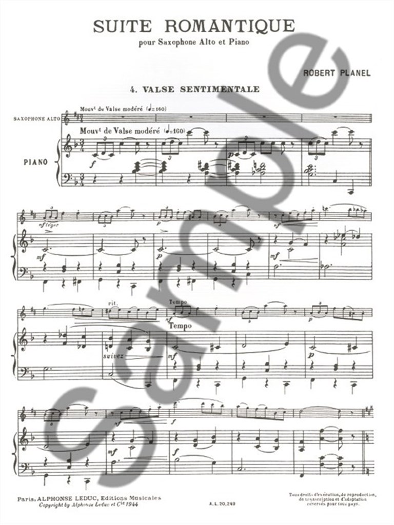 Suite Romantique N04:Valse Sentimentale Saxophone Mib Et Piano PLANEL