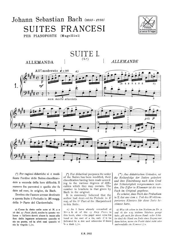 Suites Francesi Per Pianoforte BACH JOHANN SEBASTIAN