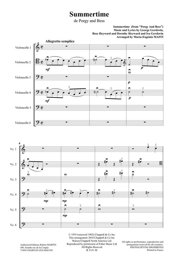 Summertime 6 Violoncelles GERSHWIN GEORGE
