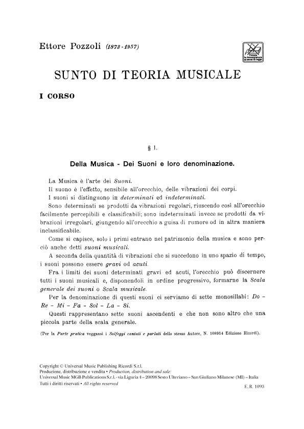 Sunto Di Teoria Musicale I Corso POZZOLI ETTORE